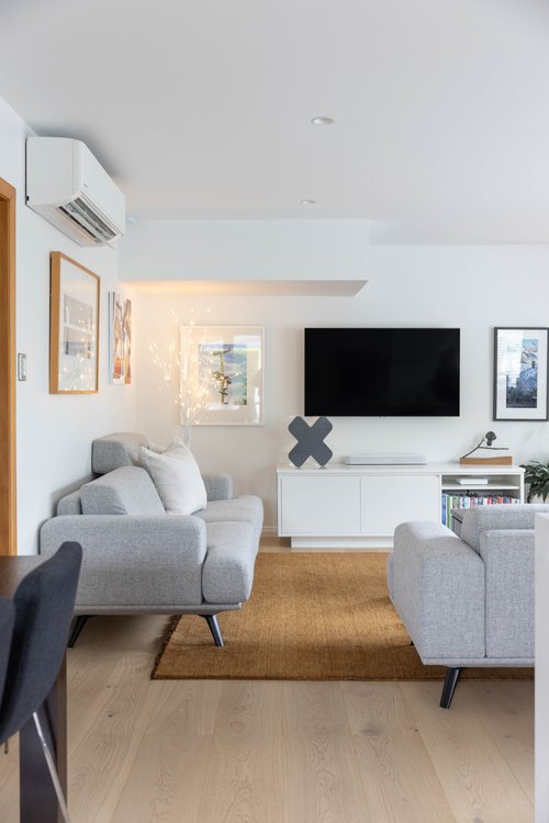 The heart of any home, the living room, received a lavish makeover with Redmonds' keen eye for style and comfort. The Kovacs Detroit couches took centre stage, upholstered in the sophisticated Charles Parsons Kenjo Dove fabric. The choice of this fabric not only exudes luxury but also ensures durability, making it the perfect match for a high-traffic area like the living room.