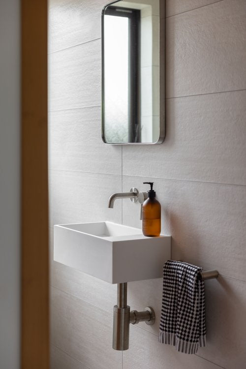 We used the Domo RLV 300x900 wall tiles to bring depth and interest with their circular relief texture. For the flooring and other wall areas, Dalston Bianco Matt 600x600 tiles were chosen. The timeless appeal of these tiles, combined with their matte finish, provides a clean and cohesive look to the entire space. The neutral colour palette enhances the versatility of the design.