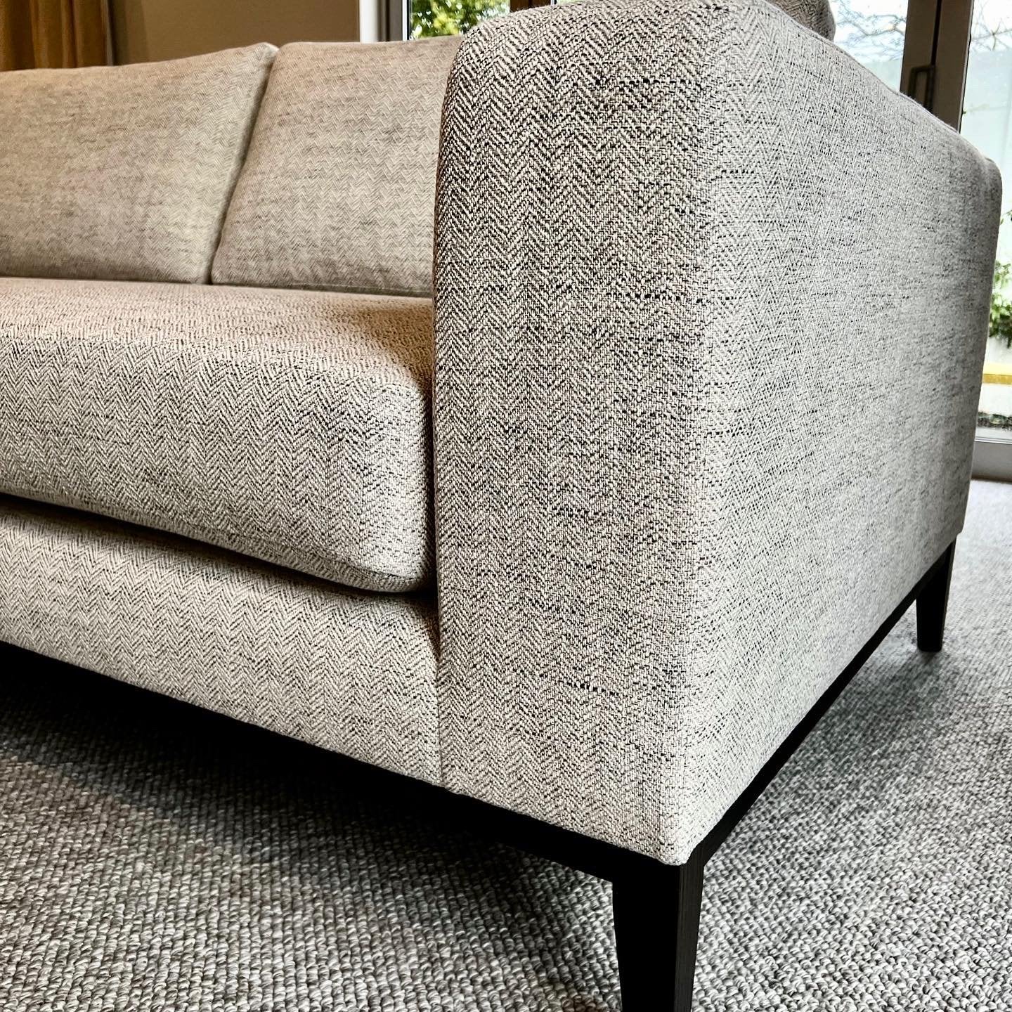 To complete the transformation, the clients selected David Shaw Logan sofas, upholstered in Charles Parsons Kenji fabric, creating a sophisticated yet welcoming seating area. The addition of a David Shaw Richmond chair, upholstered in James Dunlop Casablanca fabric, brings in a stylish accent piece that complements the contemporary aesthetic while offering supreme comfort.
