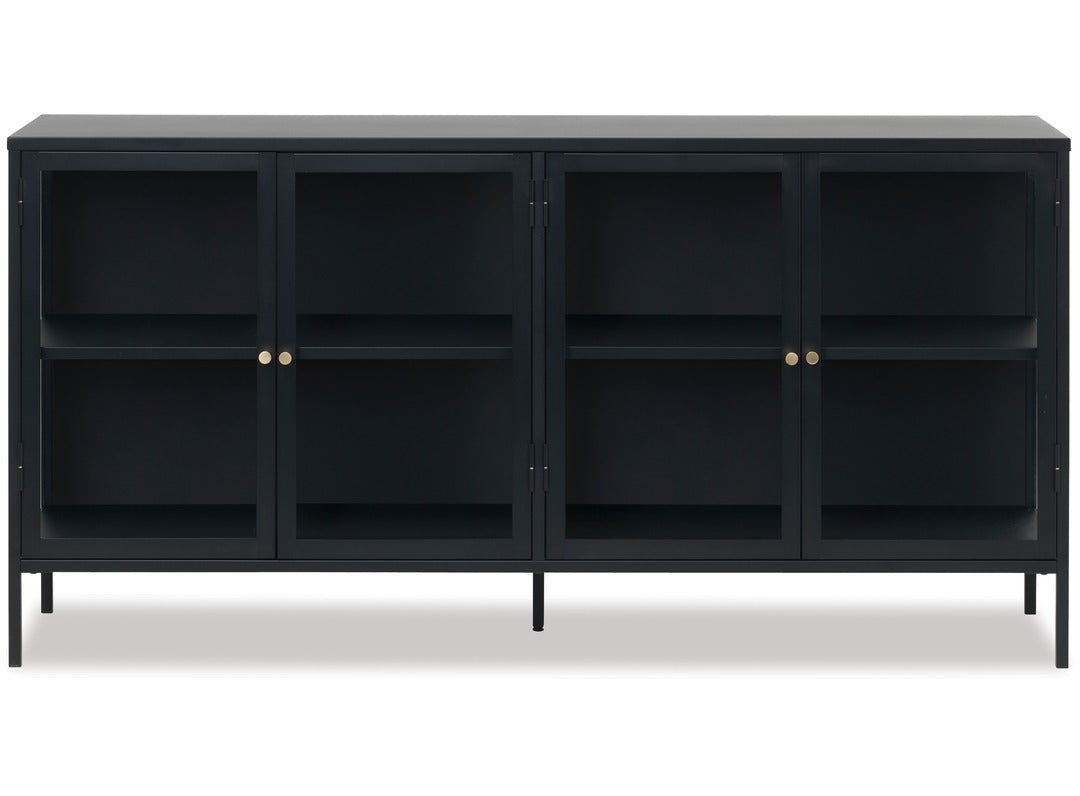 Update your indoor living area with the contemporary and functional Carmel collection. Constructed in black steel with glass panel doors and sides. The Carmel collection will make a stylish addition to your living area and offers generous space to store and display all types of objects.