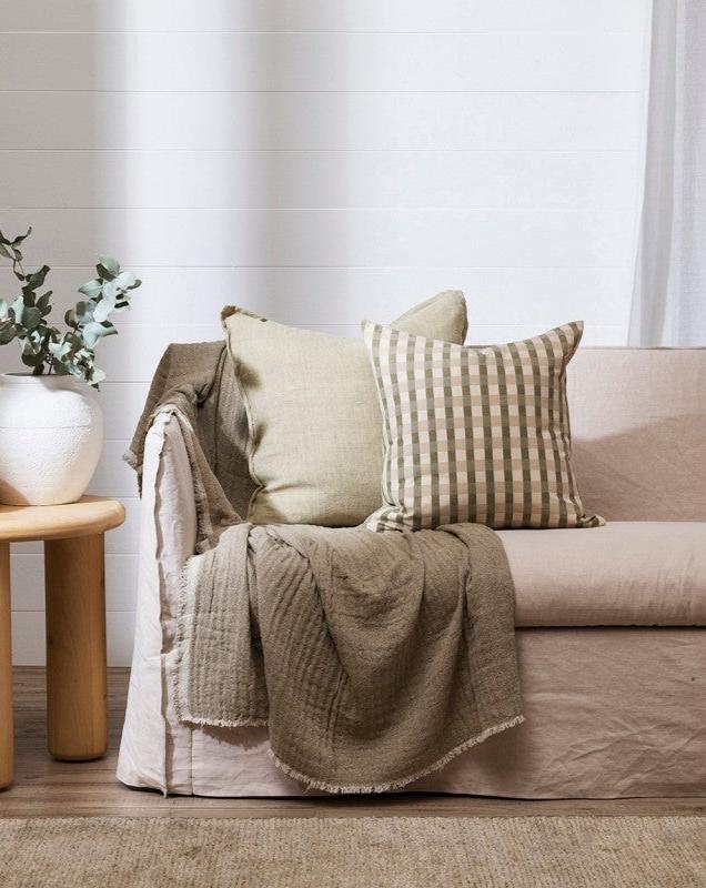 Delicate florals, plaids and fresh cotton come together to form calm, informal spaces in which to retreat and relax. Vintage cotton charm has been reinterpreted for modern living in the Aria and Mia cushions. The collection feels fresh and contemporary, creating an inviting and comforting aesthetic. 50x50cm F 75% Cotton, 25% Linen | B 100% Cotton.