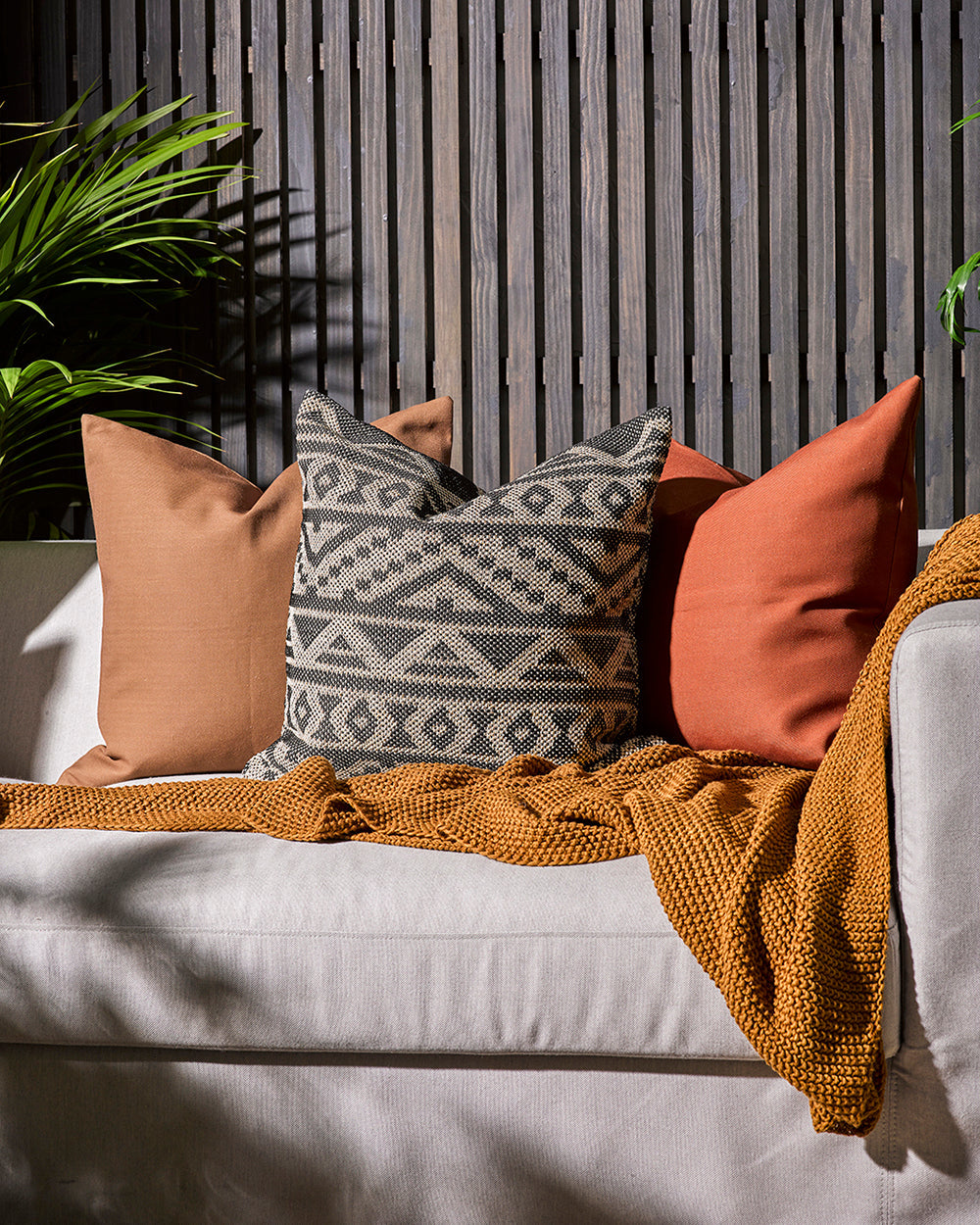 Summer months are filled with coming and going. Capture the sense of this nomadic lifestyle with the design and handwoven texture of our Sofiso cushion. Made from durable materials, this cushion is easy to clean and care for – the perfect combination for easy summer living. Pair with our Bina and Nandi cushions. Design also available in an outdoor ottoman and floor rug.